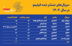 از نظر کمی، اگرچه فیلیمو در سال ۱۴۰۴ حد نصاب قابل قبول هفته‌ای ۲ قسمت را تقریبا رعایت کرد، اما از لحاظ کیفی، وضعیت مناسبی نداشت و محصولاتش یکی پس از دیگری در جلب رضایت مخاطب عام ناکام ماندند؛ اگرچه اغلب آن‌ها با حجم قابل توجهی از تماشاگر به پخش رسیدند.